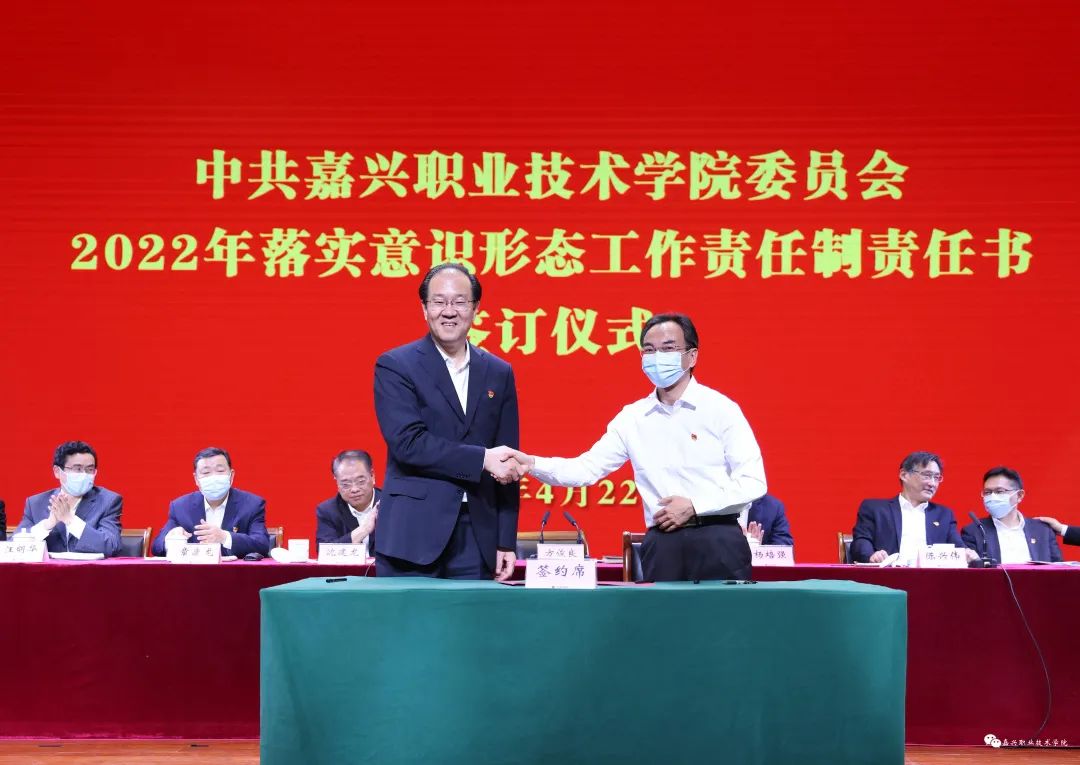 方俊良与党委班子成员、党总支书记签署党建责任书、党风廉政建设责任书、意识形态责任书。相关职能部门负责人、二级学院党总支书记、党支部书记作表态发言。